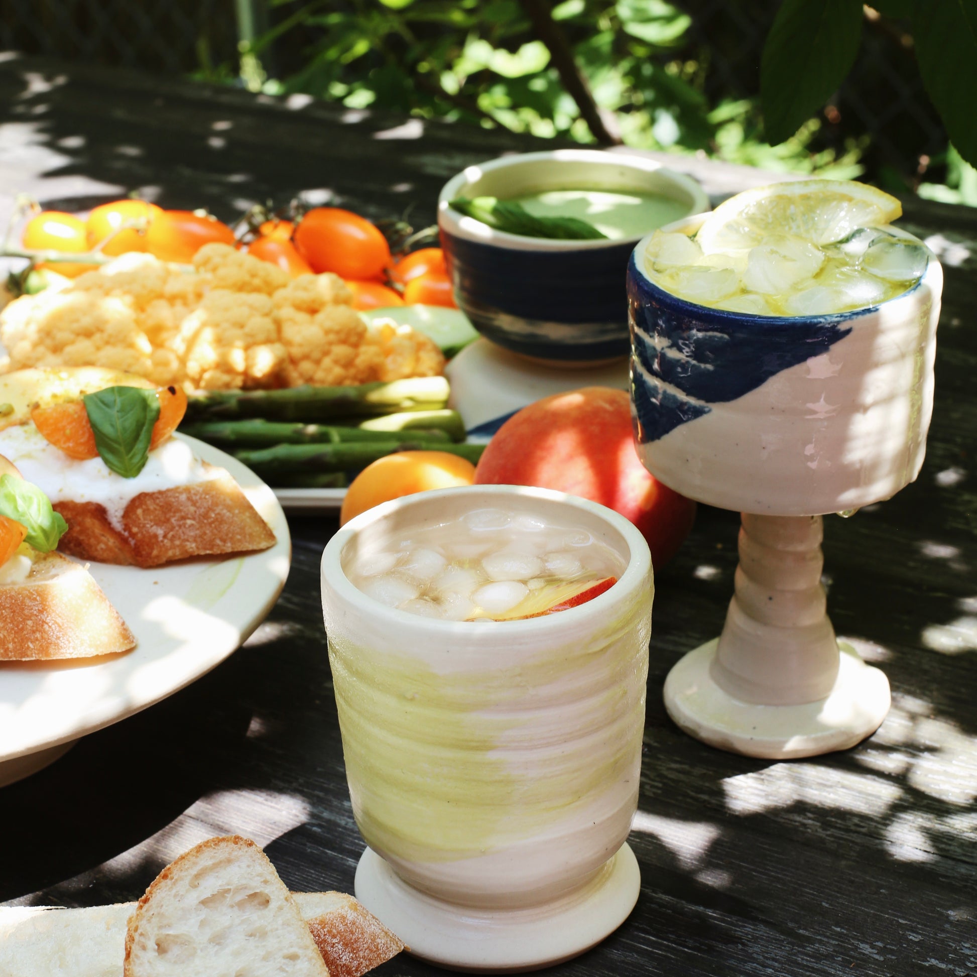 Is it a mug or a cup? Is it for coffee or something fizzy? The truth is, we'll never tell & neither should you need to! Available in chartruese or ocean blue, this cup is ready for anything hot or cold solo or with friends. Purchase individually or buy a mix-match set.